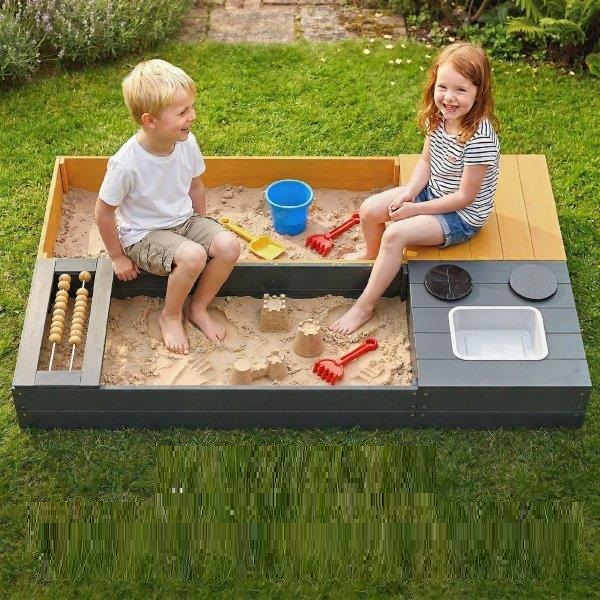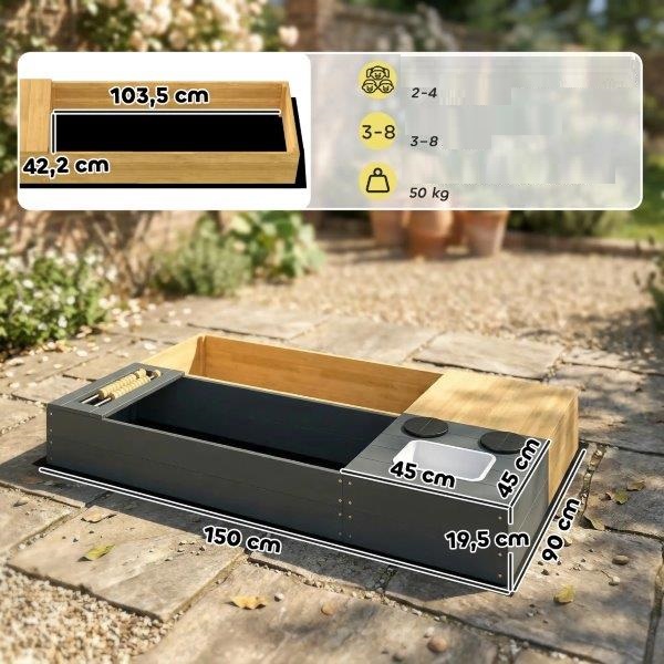 Paverskite savo sodą kūrybiniu fantazijų pasauliu su šia vaikiška smėlio dėže. Ji turi smėlio dėžę, nuimamą kriauklę, sėdimąją vietą ir daiktadėžę, todėl vaikai gali kartu tyrinėti, gaminti maistą ir konstruoti. Dėl lanksčios konstrukcijos abi zonas galima išdėstyti taip, kaip jums patinka. Tvirta medinė konstrukcija ir vandeniui atspari apdaila užtikrina ilgus saugius žaidimus. Puikiai tinka nuotykiams lauke ir žaidimams kartu.