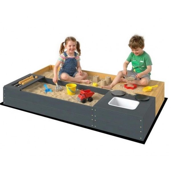 ✔ Sujungia dvi smėlio dėžes su kriaukle ir virykle, kad būtų galima išradingai žaisti kulinarijoje – universali smėlio dėžė.