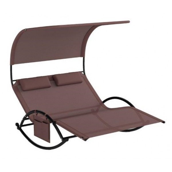 Dvigulis saulės gultas su stogeliu, šonine kišene ir 2 nuimamais galvos atlošais (Rudas)