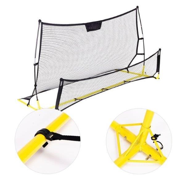 Tvirta treniruoklio konstrukcija sukurta intensyviam naudojimui bet kokiomis sąlygomis. Patvarūs plieniniai stulpai užtikrina stabilumą ir atsparumą pažeidimams net ir atliekant dinaminius pratimus. Visas įrenginys puikiai veikia tiek lauke, tiek patalpose, išlaikant patvarumą nepriklausomai nuo oro sąlygų. Patvarus poliesterio tinklelis ir lankstūs stiklo pluošto komponentai garantuoja ilgą tarnavimo laiką ir patikimą veikimą su kiekvienu atšokimu.