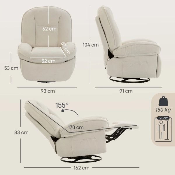 Atpalaiduojantis fotelis reglaineris (kreminės spalvos)