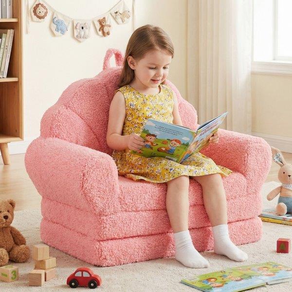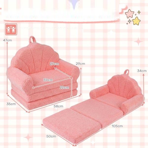Išskleidžiama vaikiška sofa/fotelis su miegojimo funkcija (Rožinės spalvos)