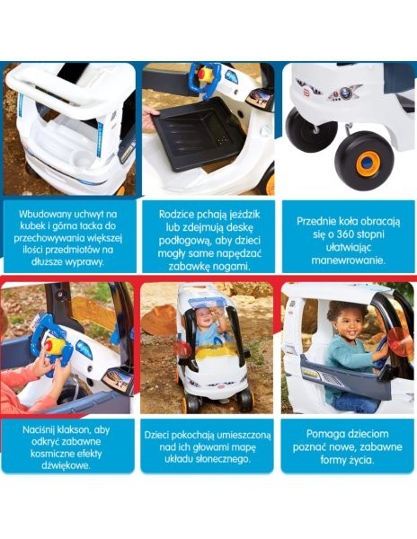 Pasiruoškite tarpgalaktiniam nuotykiui! Legendinis „Little Tikes“ „Cozy Coupe“ – kosminio amžiaus versija – tai žaislas, kuris nukels jūsų vaiką į vaizduotės, aktyvaus žaidimo ir pirmųjų kelionių pasaulį. Puikiai tinka pasivažinėjimams namuose ir sode – jame gausu funkcijų, užtikrinančių saugumą ir linksmybes mažyliams nuo 18 mėnesių amžiaus.