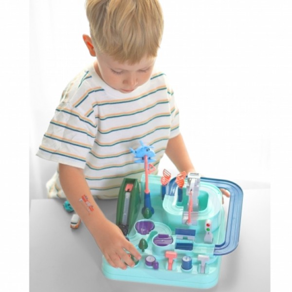 Interaktyvus kliūčių ruožas „Automobilio nuotykis“ – unikali dovana mažiesiems tyrinėtojams, trokštantiems įdomių nuotykių ir nepamirštamų iššūkių. Tai daugiau nei žaislas – tai tikra arena, kurioje vaikai gali tapti vairuotojais ir įveikti įvairias kliūtis. Dėl išmanaus dizaino ir įvairių elementų žaislas siūlo nepamirštamų akimirkų, kupinų jaudulio ir iššūkių. Tai puiki priemonė vaizduotei ir rankiniams įgūdžiams lavinti, taip pat suteikianti daugybę pramogų. Automobilių trasoje yra ne tik atrakcionų, bet ir dinamiškų, interaktyvių elementų, valdomų mygtukais ir rankenėlėmis. Tai įdomus žaidimas, reikalaujantis susikaupimo ir miklumo. Rinkinyje yra trys automobiliai, kurie, priklausomai nuo vaiko vaizduotės, gali laisvai tyrinėti trasą. Transporto priemonės paįvairins pramogas arba leis vaikams varžytis maršrute. Važiavimas trasa atrodo lengvas, tačiau daugybė elementų, tokių kaip pavaros ir pakeliamieji tiltai, pavers kelionę adrenalino kupina. Savybės: