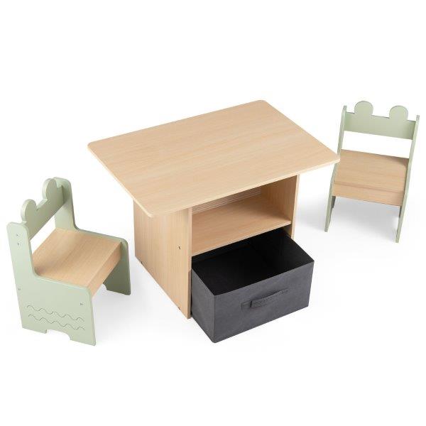 Medinis vaikiškas baldų komplektas su stalu, kėdutėmis ir stalčiais daiktams susidėti