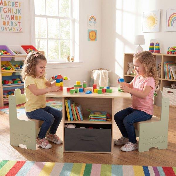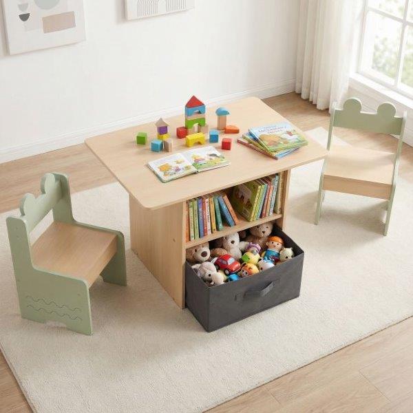 - Ištraukiamas audinio stalčius po stalu suteikia galimybę laikyti žaislus ir kitus reikmenis