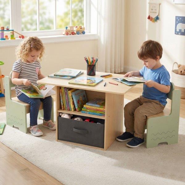 - 1 stalas ir 2 kėdės sukuria specialią erdvę vaikams piešti, valgyti, skaityti ir žaisti