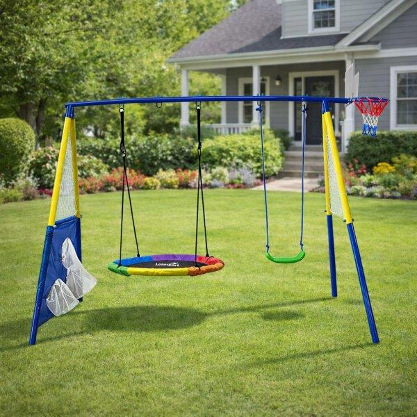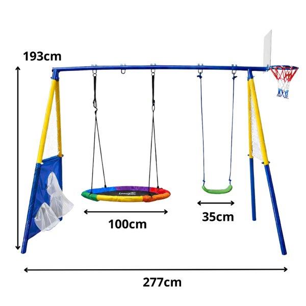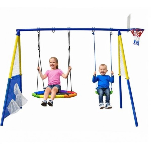 Sodo žaidimų aikštelė – tai modernus ir funkcionalus poilsio kompleksas, suteikiantis vaikams aktyvų, saugų ir įvairiapusį žaidimą lauke. Dėl išmanaus dizaino ji apjungia keturias skirtingas žaidimo galimybes: dvi sūpynes, krepšinio lanką su kamuoliu ir taikinių treniruočių kilimėlį, užtikrinant, kad kiekvienas vaikas ras sau patinkantį žaidimą.