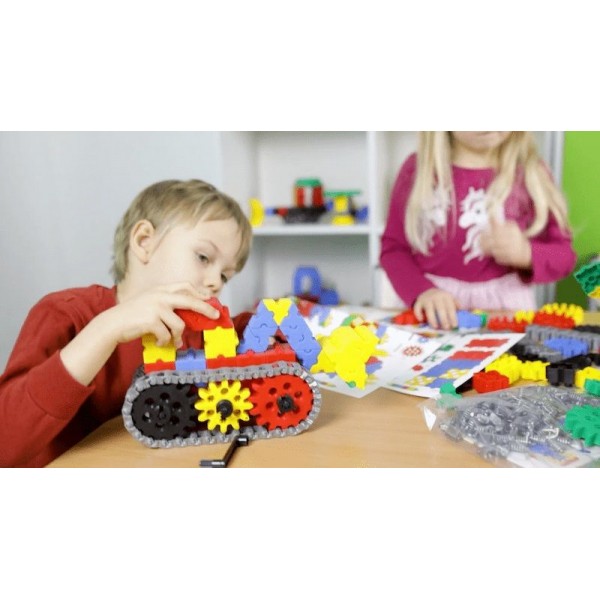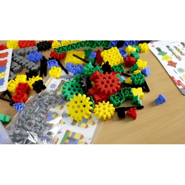 Rinkinyje yra net 320 elementų, todėl jūsų kuriamos konstrukcijos gali būti didesnės arba galite kurti kelias idėjas vienu metu. Kaladėlės būna klasikinių formų, pvz., trikampių ar stačiakampių, taip pat skirtos specializuotoms konstrukcijoms, pvz., krumpliaračiams, grandinėms, transmisijoms ir kt.
