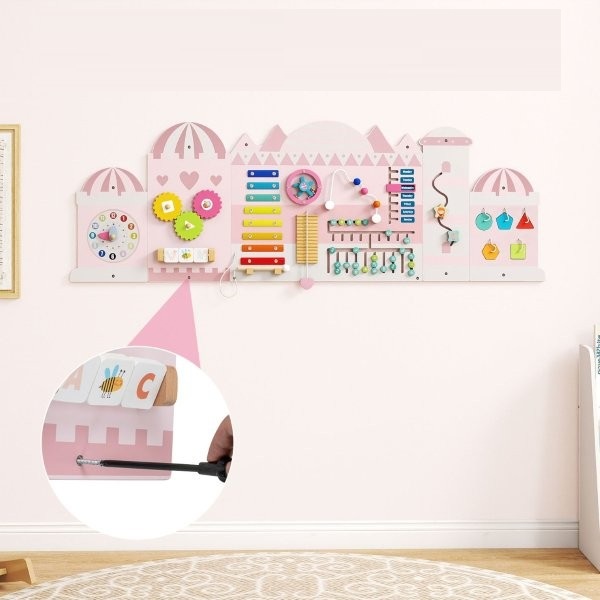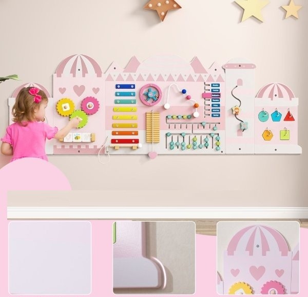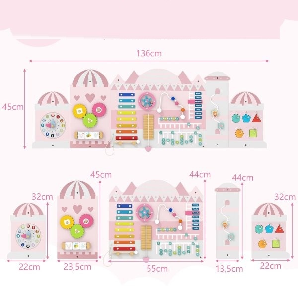 Skatinkite mokymąsi per smagų žaidimą su šia 11-in-1 veiklos siena! Pagaminta iš aukštos kokybės medinių plokščių su užapvalintais kraštais, šis prie sienos tvirtinamas žaislas garantuoja ilgalaikę pramogą vaikams nuo 3 metų amžiaus. Šis Montessori sensorinis žaislas sujungia medinį laikrodį, ksilofoną, besisukančias pavaras, atlenkiamus kaladėles, skaičiavimo slankiklį ir daug daugiau į prie sienos tvirtinamą veiklos centrą, kuris maksimaliai išnaudoja žaidimų erdvę neužimdamas grindų ploto.