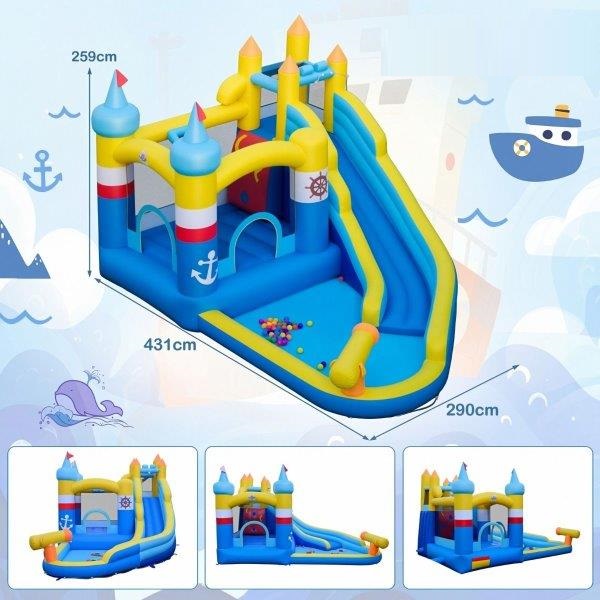 Nesibaigiančios pramogos vaikams: ši pripučiama vandens čiuožykla sukuria nuotykių pasaulį su erdvia šokinėjimo zona, įdomia ilga čiuožykla, krepšinio lanku ir sudėtinga laipiojimo siena, kuri linksmins vaikus valandų valandas. Jame taip pat yra 50 spalvingų vandenyno kamuolių ir pripučiamas krepšinio kamuolys, kad būtų kuo smagiau.