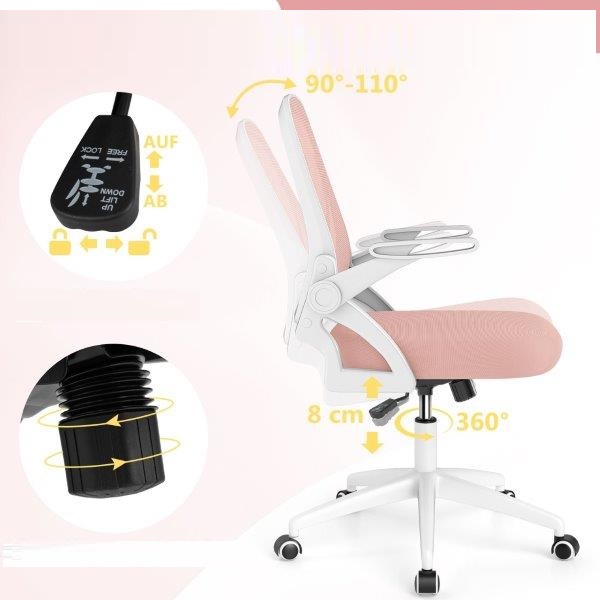 Ergonomiška mokyklinė stalo kėdė su atlenkiamais porankiais (Rožinė)