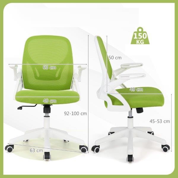 Ergonomiška mokyklinė stalo kėdė su atlenkiamais porankiais (Žalia)