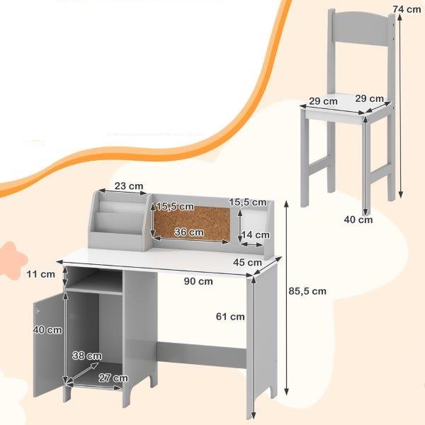 Rašomasis stalas vaikams su spintele ir knygų lentyna (Pilka)