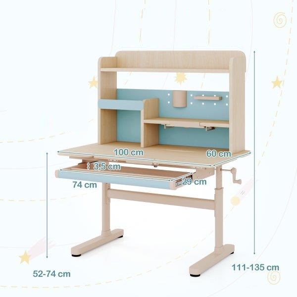 Sukurkite įkvepiančią mokymosi aplinką savo vaikui! Šis reguliuojamo aukščio stalas su vaikiška kėdute auga kartu su jūsų vaiku, užtikrindamas tobulą laikyseną atliekant namų darbus, meno projektus ir kt. Pakreipiamas stalviršis pagerina mažųjų besimokančiųjų susikaupimą ir komfortą, jis tinka rašymui (0°–15°), skaitymui (15°–30°) ir piešimui (30°–60°). Tvarkymąsi palengvina daiktų laikymo skyriai, patogus knygų stovas akių lygyje, rašiklių laikiklis ir stalčius su pertvaromis. Stabilumą ir ilgaamžiškumą garantuoja tvirtos metalinės kojelės. Mūsų ergonomiška vaikiška kėdutė prisitaiko prie kiekvieno augimo etapo, turi atlenkiamą atlošą, kuris palaiko taisyklingą laikyseną, taip pat reguliuojamą sėdynės aukštį ir gylį vaikams nuo 100 iki 160 cm ūgio. Pagerinkite savo vaiko mokymosi efektyvumą su stalu ir kėde, kurie padės jo mokymosi kelyje.