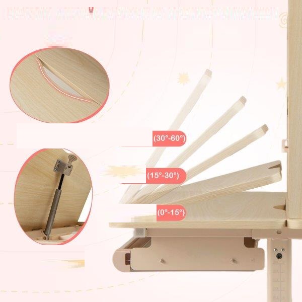 Sukurkite įkvepiančią mokymosi aplinką savo vaikui! Šis reguliuojamo aukščio stalas gali augti kartu su jūsų vaiku, užtikrindamas tobulą laikyseną atliekant namų darbus, meno projektus ir kt. Pakreipiamas stalviršis pagerina mažųjų besimokančiųjų susikaupimą ir patogumą, jis tinka rašymui (0°–15°), skaitymui (15°–30°) ir piešimui (30°–60°). Tvarkymąsi palengvina daiktų laikymo skyriai, patogus akių lygyje esantis knygų stovas, rašiklių laikiklis ir stalčius su skirtukais. Šis stalas užtikrina stabilumą ir ilgaamžiškumą dėl tvirtų metalinių kojelių. Pagerinkite savo vaiko mokymosi efektyvumą su stalu, kuris padės jo mokymosi kelyje.