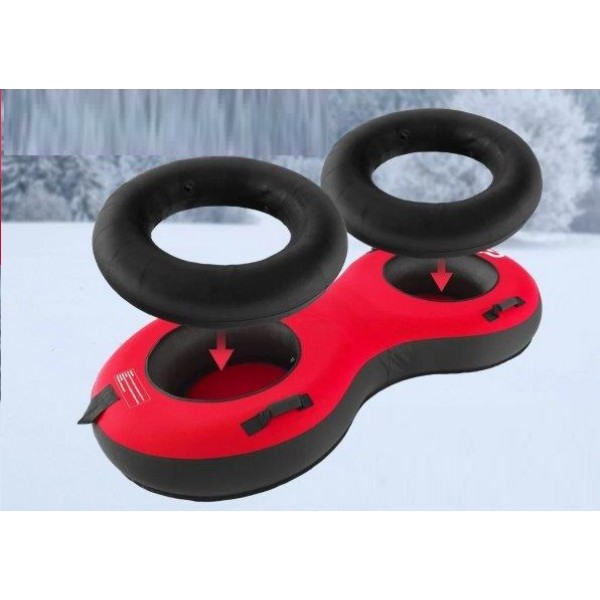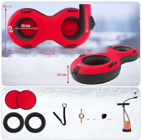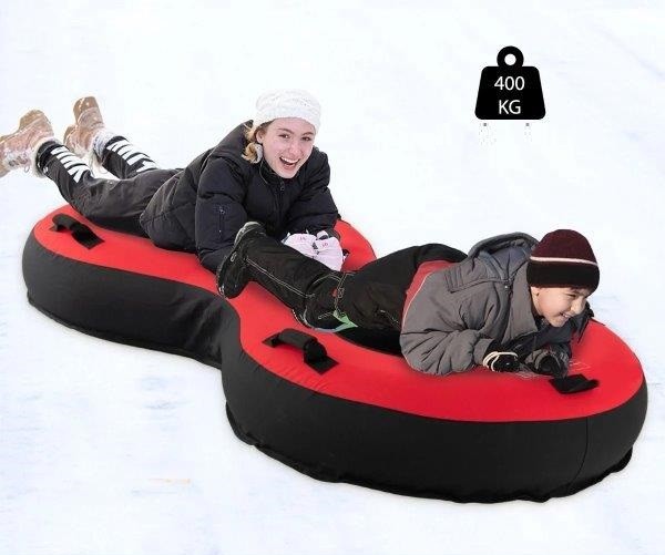 Mūsų tvirta dvivietė sniego kamera su dviem sėdynėmis ir iki 400 kg keliamąja galia garantuoja ilgalaikius prisiminimus ir juoką jūsų šeimai ar draugams, kai kartu leisite nuo kalno. Ji tiekiama su patvariu uždangalu, pagamintu iš sustorinto Oksfordo audinio, ir sustorinta, laminuota PVC apačia, užtikrinančia puikią apsaugą nuo atšiaurių oro sąlygų ir ilgalaikį patvarumą. Lygus apačia taip pat leidžia pasiekti maksimalų greitį šlaituose. Be to, vidinis sluoksnis pagamintas iš guminės padangos kameros, kuri yra labai tvirta ir atspari pradūrimams. Siekiant didesnio patogumo, sniego kamera turi nuimamą tempimo dirželį, leidžiantį lengvai užtraukti rogutes į kalną dar vienai jaudinančiai kelionei. Minkštos, paminkštintos rankenos užtikrina saugų sukibimą ir leidžia lengvai manevruoti. Galiausiai, sniego kameros pripūtimas ir išleidimas yra labai paprastas naudojant pridedamą padangų pompą ir nepralaidų cikloninį dangtelį.