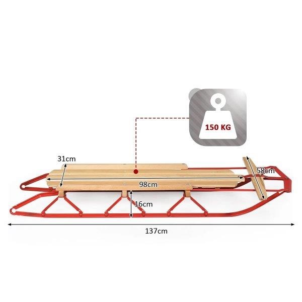 Patirkite jaudinantį slidinėjimo malonumą su mūsų plieninėmis ir medinėmis rogėmis! Tvirta medinė ir plieninė konstrukcija sukurta atlaikyti atšiauriausias sąlygas ir užtikrinti ilgametį malonumą. Lygūs metaliniai bėgeliai užtikrina sklandų ir greitą slydimą slidinėjimo metu. Papildomas vairo stovas leidžia lengvai valdyti ir greitai keisti kryptį. Iš anksto išgręžtos skylės vairo stovas leidžia saugiai pritvirtinti vilkimo lynus, kad būtų patogiau. Tai puikus pasirinkimas rogučių entuziastams, mėgėjams ir sniego mylėtojams visame pasaulyje.