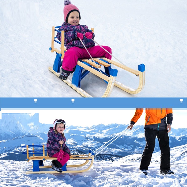Mūsų sniego rogės – idealus pasirinkimas. Pagamintos iš patvarios inžinerinės medienos ir aukštos kokybės plastiko, šios traukiamos rogės garantuoja puikų stabilumą, ilgaamžiškumą ir 60 kg keliamąją galią. Metaliniai bėgeliai apačioje leidžia lengvai slysti ir traukti sniegu ar ledu. Dviguba grotelių nugarėlė padidina vaikų saugumą. Sniego rogės taip pat kompaktiškai sulankstomos, kad būtų lengva nešti ir laikyti. Surinkti nereikia, todėl surinkimas užima minimaliai laiko ir pastangų, todėl turėsite daugiau laiko mėgautis lauko pramogomis su vaikais.