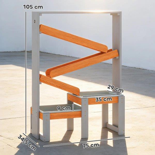 Įneškite linksmybių į savo sodą su šiuo smėlio ir vandens stalu! 3–8 metų vaikai gali kartu pilti, semti, konstruoti ir tyrinėti. Du nuimami dubenėliai palengvina valymą, o tvirtas eglės medienos rėmas užtikrina saugų žaidimą. Puikiai tinka kūrybingoms mažoms rankytėms – garantuotos valandos pramogų!