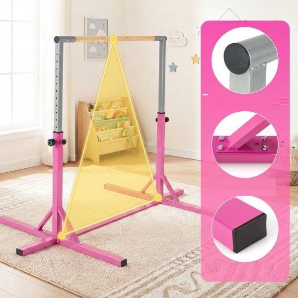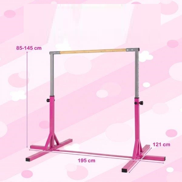 Gimnastikos skersinis vaikams su 12 aukščio reguliavimo padėčių nuo 85 iki 145 cm