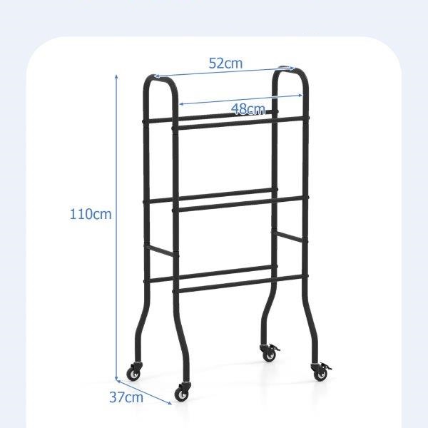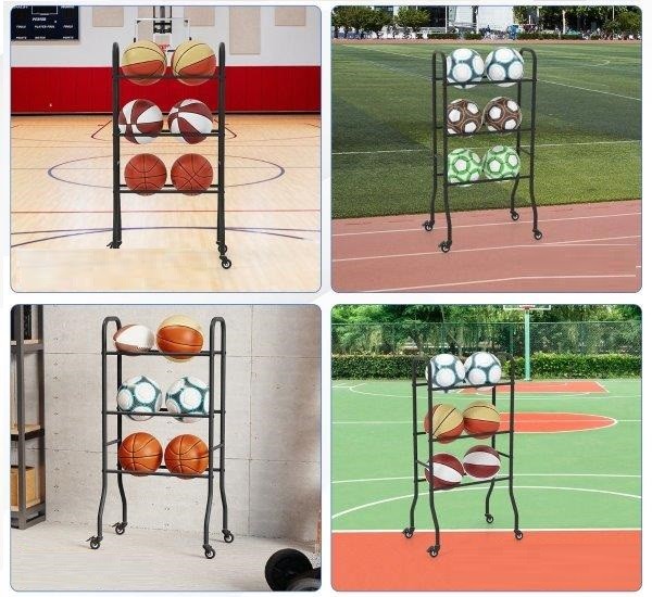Šis trijų pakopų krepšinio stovas – puikus sprendimas norint išlaikyti tvarką ir organizuotumą jūsų erdvėje. Kiekvienos pakopos ilgis yra 48 cm, o joje telpa du standartiniai krepšinio kamuoliai, o bendra talpa – šeši kamuoliukai. Stovas turi 360° besisukančius, tvirtus ratukus, įskaitant du užrakinamus, todėl jį lengva perkelti ir jis juda sklandžiai bei stabiliai, todėl jį galima greitai perkelti į kitą vietą. Aukštos kokybės metalinių vamzdžių konstrukcija ir sustiprinti skersiniai užtikrina puikų stabilumą ir ilgaamžiškumą. Prie stovo pridedamos aiškios instrukcijos ir visi reikalingi įrankiai, kad būtų lengva surinkti.