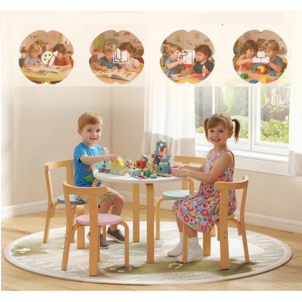 ✔ Rinkinyje yra vaikiškas stalas ir keturios kėdės, tinkančios žaidimams ir pramogoms
