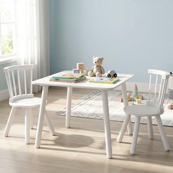 Sukurkite ypatingą erdvę savo vaikui su mūsų vaikiško stalo ir kėdžių komplektu! Jį sudaro dvi kėdės ir stalas, ant kurių vaikai galės smagiai leisti laiką su draugais. Ant aktyvių užsiėmimų stalo yra pakankamai erdvės, kad tilptų įvairūs vaikiški daiktai. Vaikiškos kėdutės turi ergonomiškos formos atlošus ir lygias, apvalias sėdynes, kurios skatina sveiką laikyseną. Jūsų vaikas galės patogiai sėdėti skaityti, mokytis, piešti, užsiimti rankdarbiais, žaisti su kaladėlėmis ir dar daugiau. Tvirtos medinės kojelės ir neslystančios pėdelės užtikrina stabilumą ir saugumą. Apvalūs kampai ir neskilinėjantis paviršius daro vaikišką sėdimąją dalį saugią vaikams. Lengvas surinkimas leidžia greitai ir paprastai ją pastatyti.