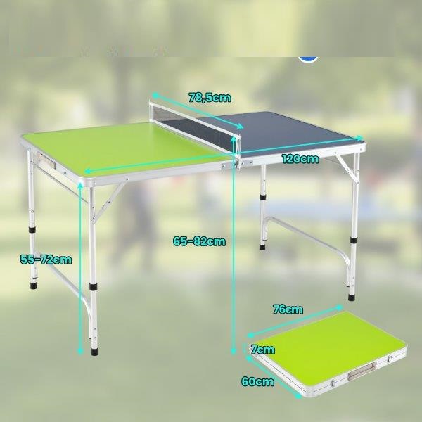 Mūsų nešiojamas stalo teniso stalas sukurtas taip, kad greitai ir lengvai praleistų laiką ir būtų universalus bet kurioje erdvėje. Nesvarbu, ar tai būtų mažame miesto bute, ar biure, kompaktiškas dydis puikiai tinka ankštose erdvėse, o reguliuojamo aukščio nustatymai leidžia tiek vaikams, tiek suaugusiems patogiai žaisti kartu. Surinkimas yra labai paprastas – tiesiog išskleiskite ir saugiai užfiksuokite, kad žaidimai būtų stabilūs ir be rūpesčių. Lengvas dizainas ir tvirtos nešiojimo rankenos leidžia lengvai transportuoti stalą, nesvarbu, ar tai šeimos susibūrimas lauke, ar savaitgalio išvyka. Aukštos kokybės aliuminio rėmas ir neslystančios kojelės užtikrina stabilumą ant bet kokio paviršiaus, todėl galite saugiai žaisti net ir intensyvių rungtynių metu. Šis daugiafunkcis paviršius yra ne tik stalo teniso stalas, bet ir puikus rankdarbiams, žaidimų vakarams ar papildomai daiktams susidėti vakarėliuose. Su pridedamais priedais esate pasiruošę žaisti bet kada ir bet kur.