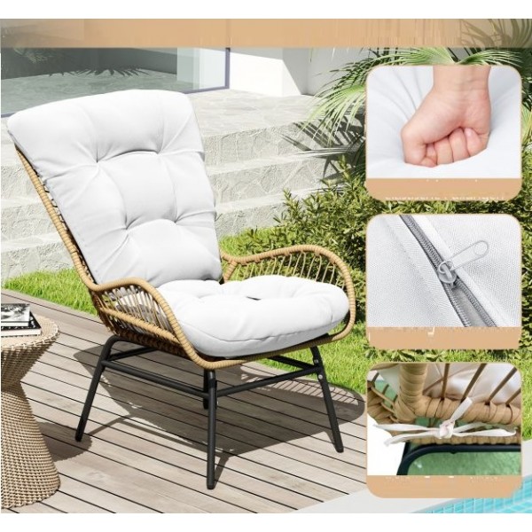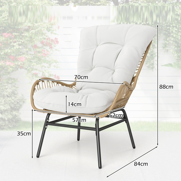 Mėgaukitės visišku atsipalaidavimu su šia ergonomiška rotango kėde, skirta naudoti tiek viduje, tiek lauke. Pagaminta iš aukštos kokybės PE rotango, kėdė yra ir patvari, ir elegantiška. Poilsio kėdė taip pat turi patogią, ilgą pagalvėlę, kuri palaiko tiek sėdynę, tiek atlošą, pritvirtinta tvirtinimo detalėmis ir turi užtrauktuką, kad būtų lengva valyti. Ergonomiškos formos sėdynė kartu su tvirtu metaliniu rėmu atlaiko iki 180 kg svorį ir siūlo tobulą komforto bei patvarumo derinį. Nesvarbu, ar ji pastatyta sode, verandoje, ar viduje, ši rotango kėdė sklandžiai integruojasi į bet kokį interjerą ir žada stilingą, bet funkcionalų jūsų namų papildymą.