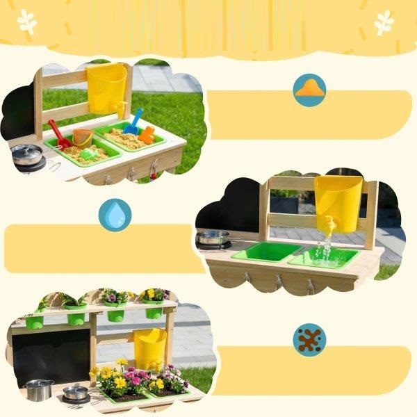 - ✔ Vaikai mėgaujasi gamindami maistą, sodindami ir žaisdami vandenyje su tikroviškais aksesuarais šioje lauko vaikų purvo virtuvėje.