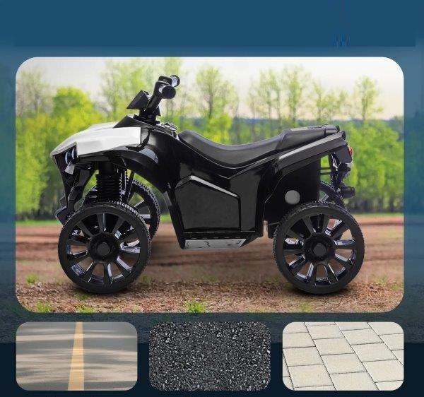 - ✔ Galingas šio vaikiško elektrinio keturračio 6 V variklis leidžia važiuoti įvairiais paviršiais ir žadina smalsumą.