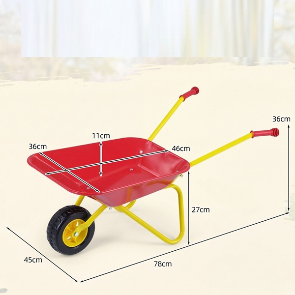 Šis vaikiškas sodo vežimėlis sukurtas ilgalaikiam naudojimui ir pasižymi tvirtu metaliniu rėmu, vientisa pakrovimo platforma ir patikimu stovėjimo stabdžiu, kuris atlaikys daugybę nuotykių. Lygūs, nesubraižyti kraštai ir neslystančios rankenos užtikrina saugų ir patogų sukibimą mažoms rankytėms. Jis gali gabenti iki 15 kg svorį ir yra pakankamai universalus, kad galėtų gabenti šviežias daržoves, smėlį, sniegą ar lapus – begalinėms pramogoms. Aprūpintas tvirta padanga, jis lengvai slysta per žolę, purvą, grindinį ir kt. – idealiai tinka žaisti lauke bet kuriuo metų laiku. Rekomenduojama vaikams nuo 3 metų amžiaus. Be pramogų, jis skatina tokius lavinamuosius įgūdžius kaip koordinacija, atsakomybė ir komandinis darbas, paversdamas žaidimo laiką prasmingomis šeimos akimirkomis, kupinomis mokymosi ir bendrystės.