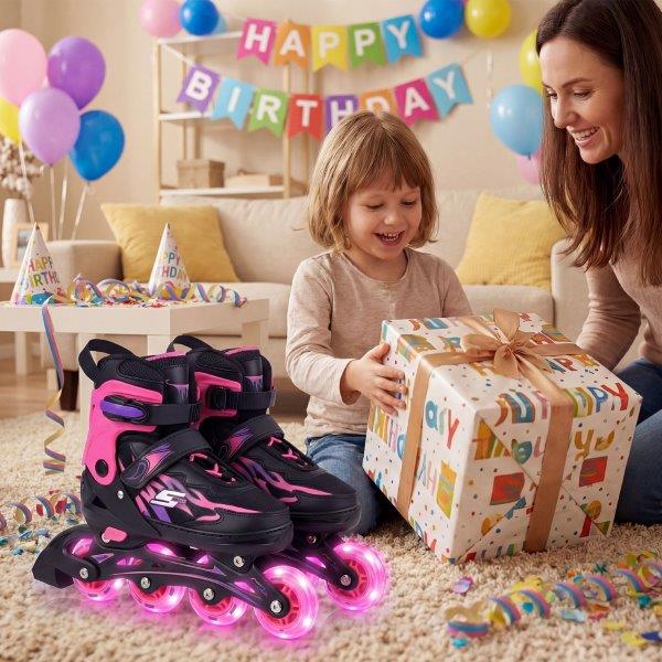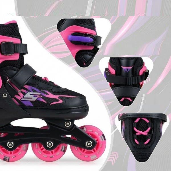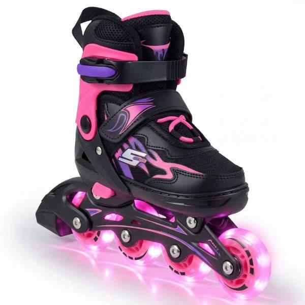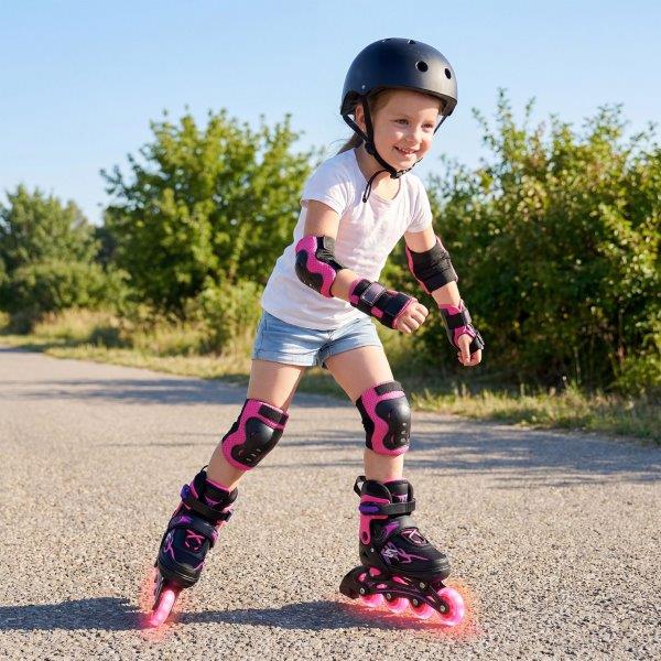 Pagaminti iš kvėpuojančio tinklinio audinio ir paminkštinto pamušalo, šie riedučiai užtikrina ilgalaikį komfortą ir puikų oro srautą ilgų važiavimų metu. Sklandžiai riedantys PU ratukai kartu su patikimais ABEC-7 guoliais padeda mažiesiems čiuožėjams išlaikyti pusiausvyrą ir užtikrintai valdyti čiuožimą. Patogi mygtukinė reguliavimo sistema leidžia riedučiams augti kartu su jūsų vaiku, todėl jie saugiai priglunda prie įvairių dydžių čiuožyklų. Sustiprintos sagtys, „Velcro“ užsegimai ir patobulinta stabdžių sistema veikia kartu, kad būtų užtikrintas didesnis saugumas. Judesiu aktyvuojami šviečiantys ratukai ir stilingas dizainas užbaigia komplektą, todėl kiekvienas važiavimas bus smagus ir įsimintinas.