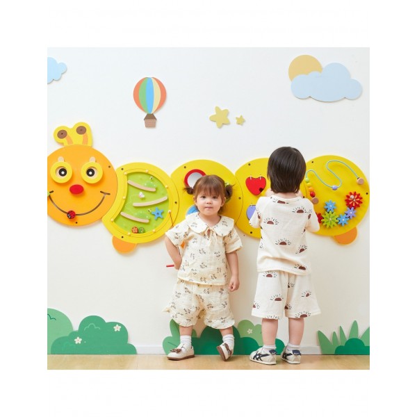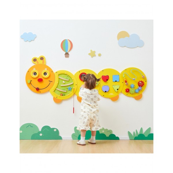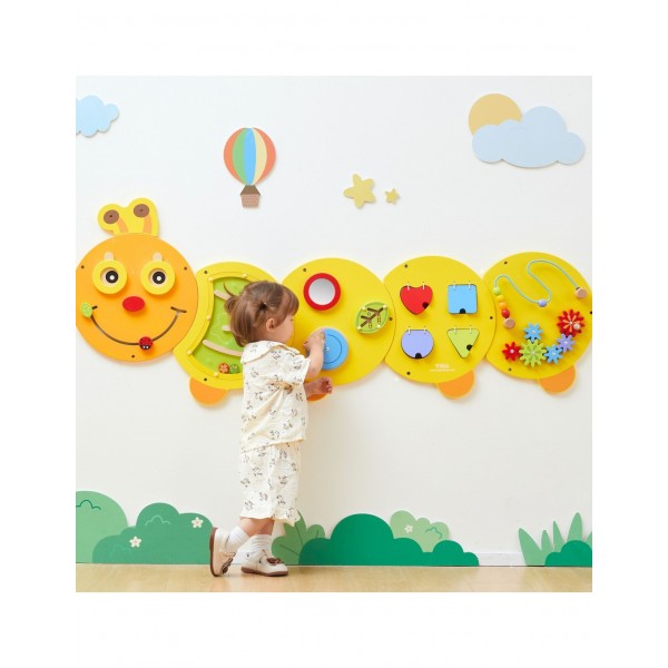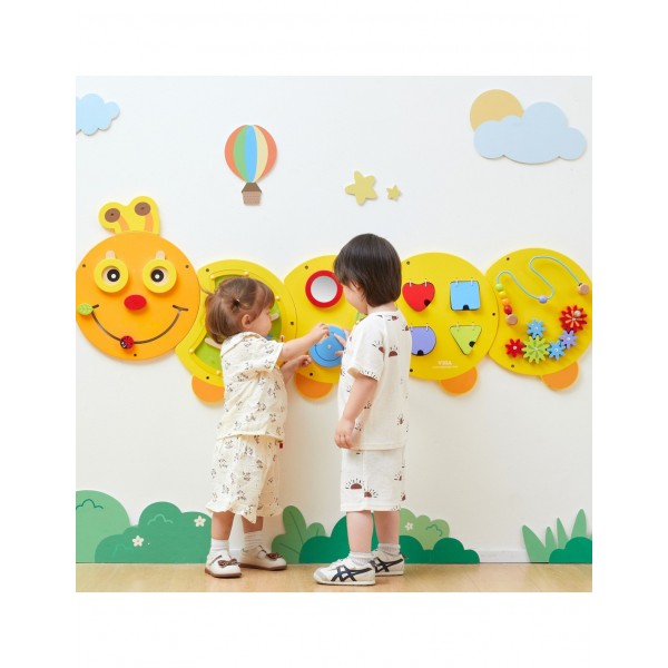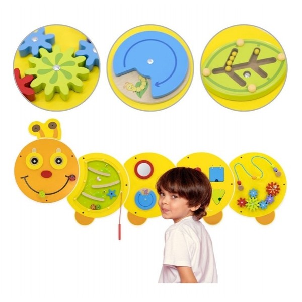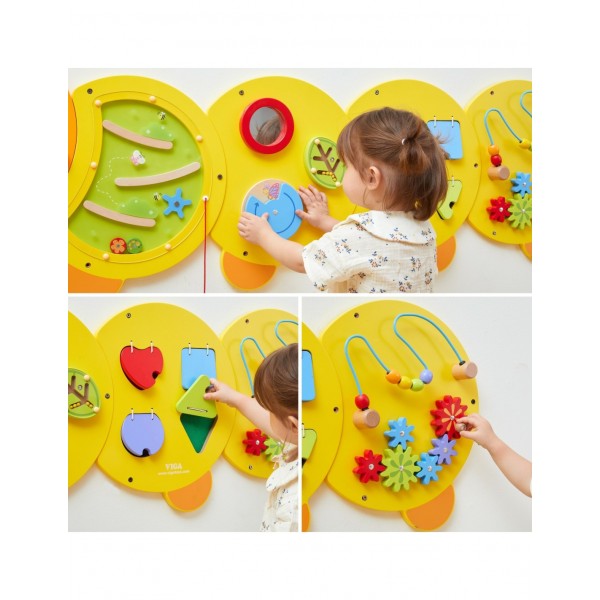 Atraskite žavų žaidimų ir mokymosi pasaulį su besišypsančiu mediniu VIGA vikšru, kuris bet kurią sieną pavers interaktyviu pramogų centru! Ši didžiulė veiklos lenta – tikra žaidimų aikštelė mažoms rankytėms, siūlanti penkias skirtingas staigmenų kupinas paneles. Vaikams patiks tyrinėti labirintus, sukioti spalvingas pavaras ir atrasti formas, kartu leidžiant begalę valandų linksmybių. Dėl kruopštaus meistriškumo ir ryškių spalvų vikšras yra ne tik nuostabus žaislas, bet ir graži vaiko kambario, darželio ar žaidimų kambario puošmena. Investuokite į savo mažylio intelektualų vystymąsi ir padovanokite jam žaislą, kuris auga kartu su jo smalsumu ir naujais įgūdžiais. Vikšro matmenys: 155 x 61 x 6 (IxPxS) cm.