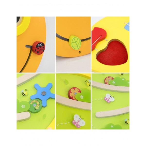 - 1 panelė (labirintas): sudėtingos trasos su judančiais elementais ir žavinga vabzdžių grafika.