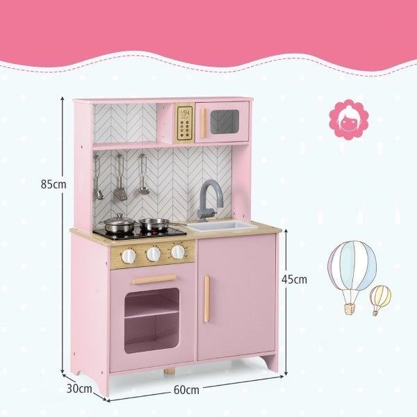 Medinė vaikų virtuvėlė su mikrobangų krosnele, virykle, kriaukle ir orkaite