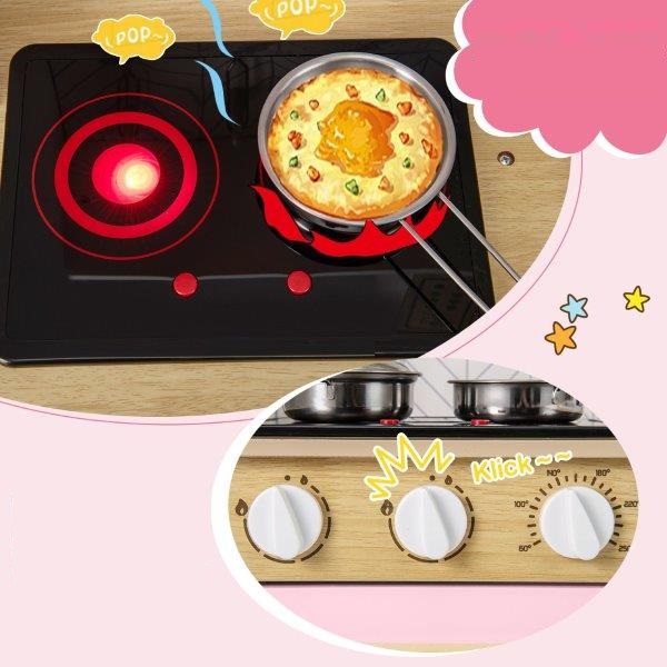 Padovanokite savo vaikui kulinarinių nuotykių su mūsų žaidimų virtuvės rinkiniu! Šis medinis žaidimų rinkinys turi virykles su šviesomis ir garsais, taip pat besisukančias rankenėles, kurios suteikia valandų valandas išradingo žaidimo. Su mikrobangų krosnele, orkaite, maišytuvu ir kriaukle šis rinkinys siūlo begalę žaidimo galimybių. Žaidimų rinkinys taip pat suteikia daug vietos virtuvės įrankiams ir skatina mokytis tvarkytis.