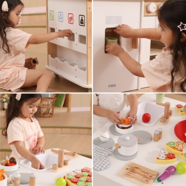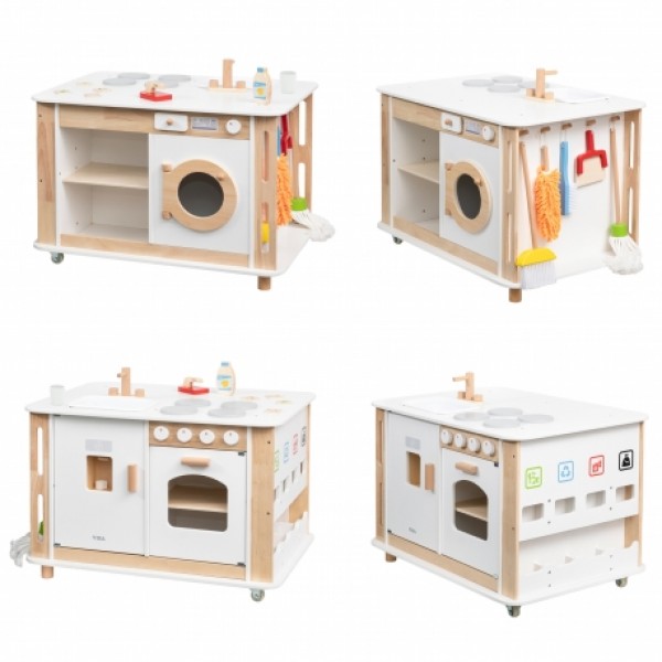 Mažyliai gali gaminti maistą, skalbti drabužius, tvarkytis ir mokytis apie perdirbimą, žaisdami vaidmenimis realistiškas namų scenas. Interaktyvūs elementai, tokie kaip ledo generatorius ir vejapjovė su garso efektais, žaidimą paverčia dar įdomesniu. Salos stilius ir daugybė priedų skatina bendradarbiavimą ir lavina socialinius įgūdžius. Tai puiki dovana vaikams nuo 3 metų, derinant kasdienį mokymąsi su kūrybiniu žaidimu!