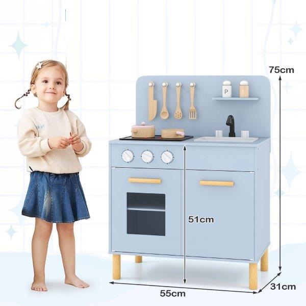 Šis žaidimų virtuvės komplektas siūlo vaikams interaktyvią ir įtraukiančią kulinarinę patirtį su dviem viryklės degikliais, kurie šviečia ir skleidžia garsus, taip pat besisukančiomis rankenėlėmis, kurios spragsi. Orkaitė, maišytuvas ir kriauklė suteikia papildomų žaidimo galimybių mažiesiems virėjams. Rinkinyje taip pat yra daug vietos daiktams susidėti, todėl vaikai lavina organizacinius įgūdžius. Jame yra visas maisto gaminimo priedų asortimentas, kad vaikai galėtų iš karto pradėti gaminti.