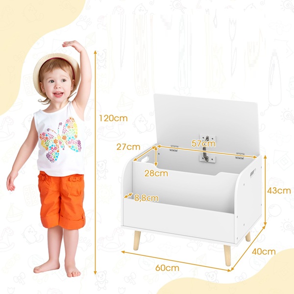 Palaikykite tvarką savo vaiko žaidimų aikštelėje su mūsų žaislų dėže su integruota knygų lentyna! Žaislų laikymo ir knygų lentynos derinys skatina vaikus ugdyti skaitymo ir tvarkymosi įpročius. Erdvi žaislų dėžė siūlo daug vietos vaikų daiktams. Dėl vaikui pritaikyto aukščio ja lengva naudotis. Saugos vyriai ir išpjauta rankena priekyje užtikrina saugų dangčio atidarymą ir lengvą prieigą prie žaislų bei knygų. Tvirta konstrukcija su medinėmis kojelėmis atlaiko kasdienius žaidimus. Suapvalinti kampai suteikia papildomo saugumo. Po naudojimo lygų paviršių galima lengvai nuvalyti.